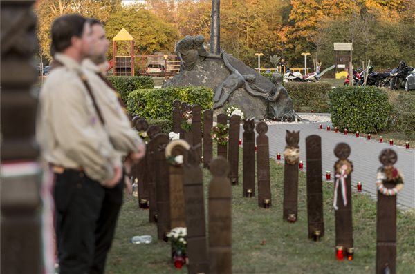 Potápi Árpád János a határőrlaktanyánál, ahol a forradalom idején több mint százan vesztették életüket, amikor a laktanyából fegyvertelen tüntetők közé lőttek, elmondta, hogy azok, akik 1956. október 26-án békésen vonultak utcára, egy szabad világ eljövetelében hittek, amely leszámol a kommunizmussal, az elnyomással és az “évtizedes hazánkra boruló sötétséggel”.