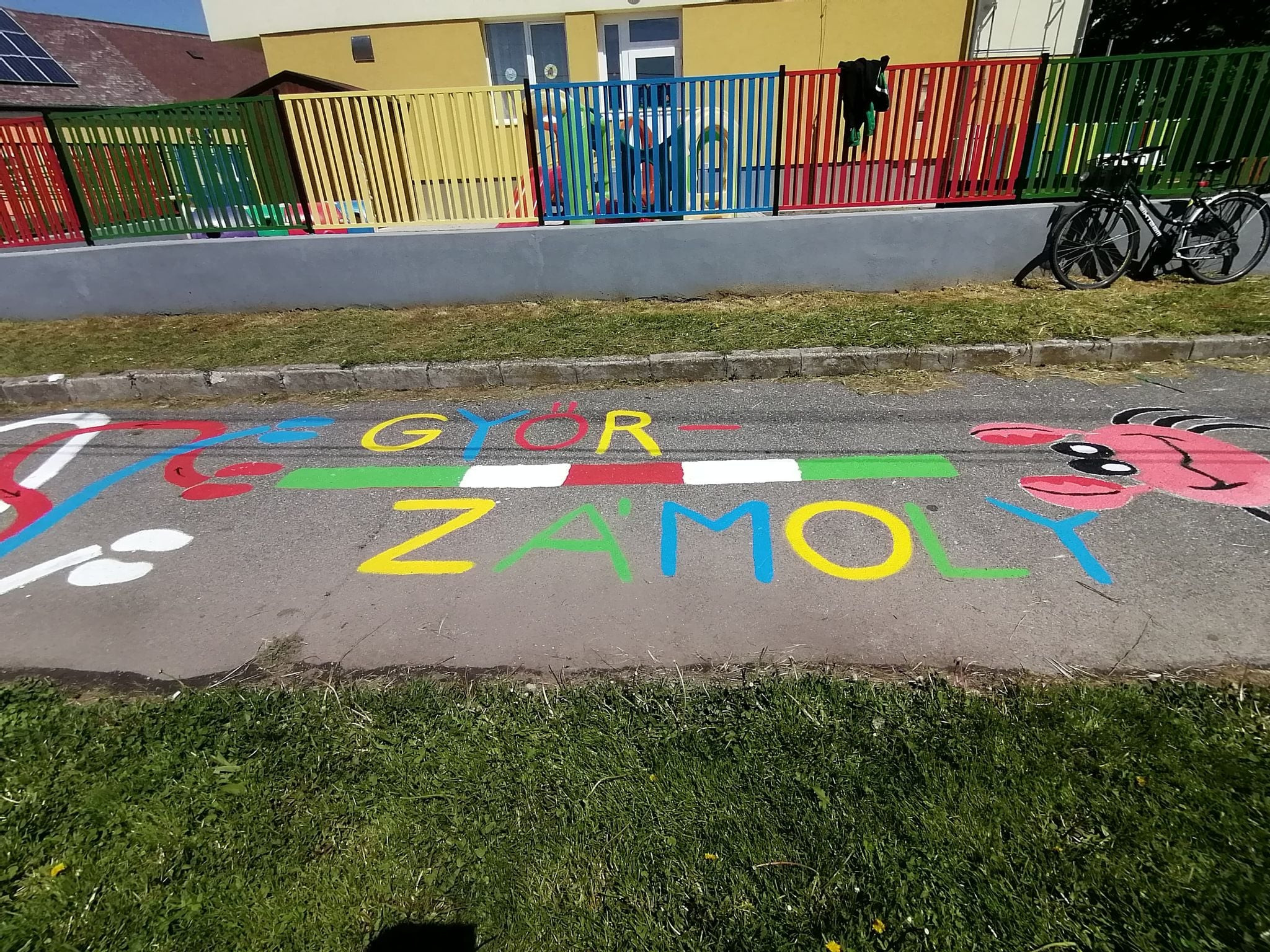 Interaktív ugróiskolát festettek az aszfaltra Győrzámolyon. Már használatba is lehet venni!