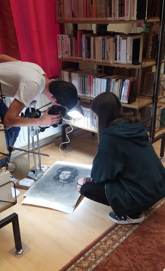 Elkezdtük kiválogatni, mely rajzok sugározzák a legjobban – az egyébként műszaki tanár – ábrázoló tehetségét. Ez nagyjából október elején-közepén történt. A rajzok kiválasztása mellett kaptunk egy másik feladatot is az értéktári munkától függetlenül: az összes rajzot le kellett fotózni, vagyis ,,bedigitalizálni”, hogy számítógépen is meglegyenek a művek.