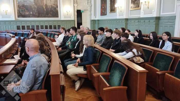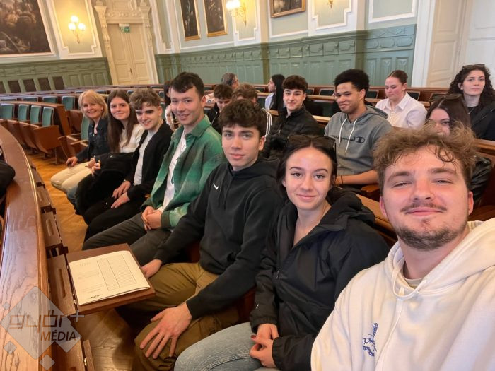 Anschließend folgte eine spannende Führung durch das Rathaus– natürlich auf Deutsch – mit einem Highlight: dem Aufstieg auf den Rathausturm und dem Ausblick über Győr. Auch unser Schulleiter war dabei und erzählte interessante Fakten über unsere Stadt – für die Gäste ebenso wie für uns selbst.