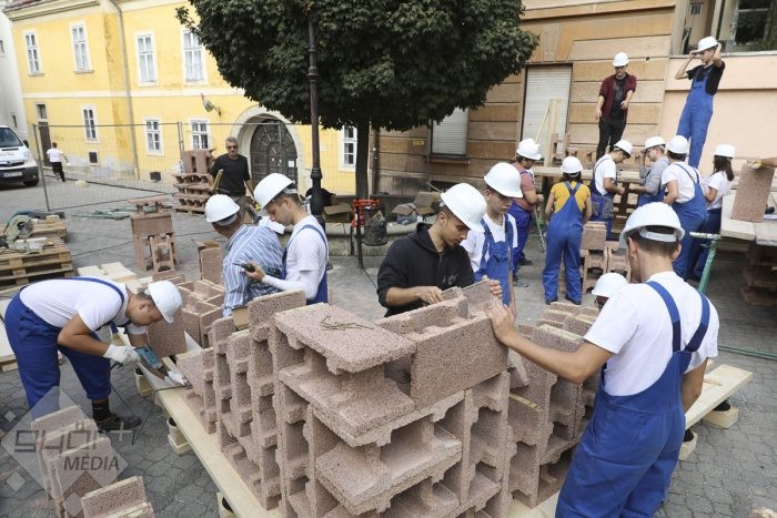 Akik a Nefelejcs köz felé járnak, bizonyára észrevették, valami készül. A Design Hét alkalmából már épül egy installáció, amely 2020 tavaszáig kültéri kiállítótérként szolgálja Győr belvárosában a közösséget. A részletekről Nagy Zsuzsa, a szervező Terasz Csoport képviselője számolt be lapunknak. A fából és durisol építőelemekből készülő pavilon létrehozásában a Hild József Építőipari Szakgimnázium tanulói vannak a szervezők segítségére.