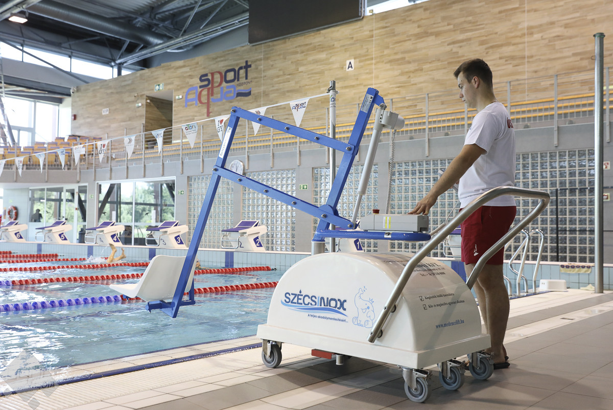 „Ez az emelő berendezés két millió forintba került és volt az egyetlen hiányzó láncszem, így az Aqua Sportcentrum teljesen akadálymentes.”.- emelte ki Hajtó Péter a Győr Projekt Kft. üzemeltetési és kulturális igazgatója.