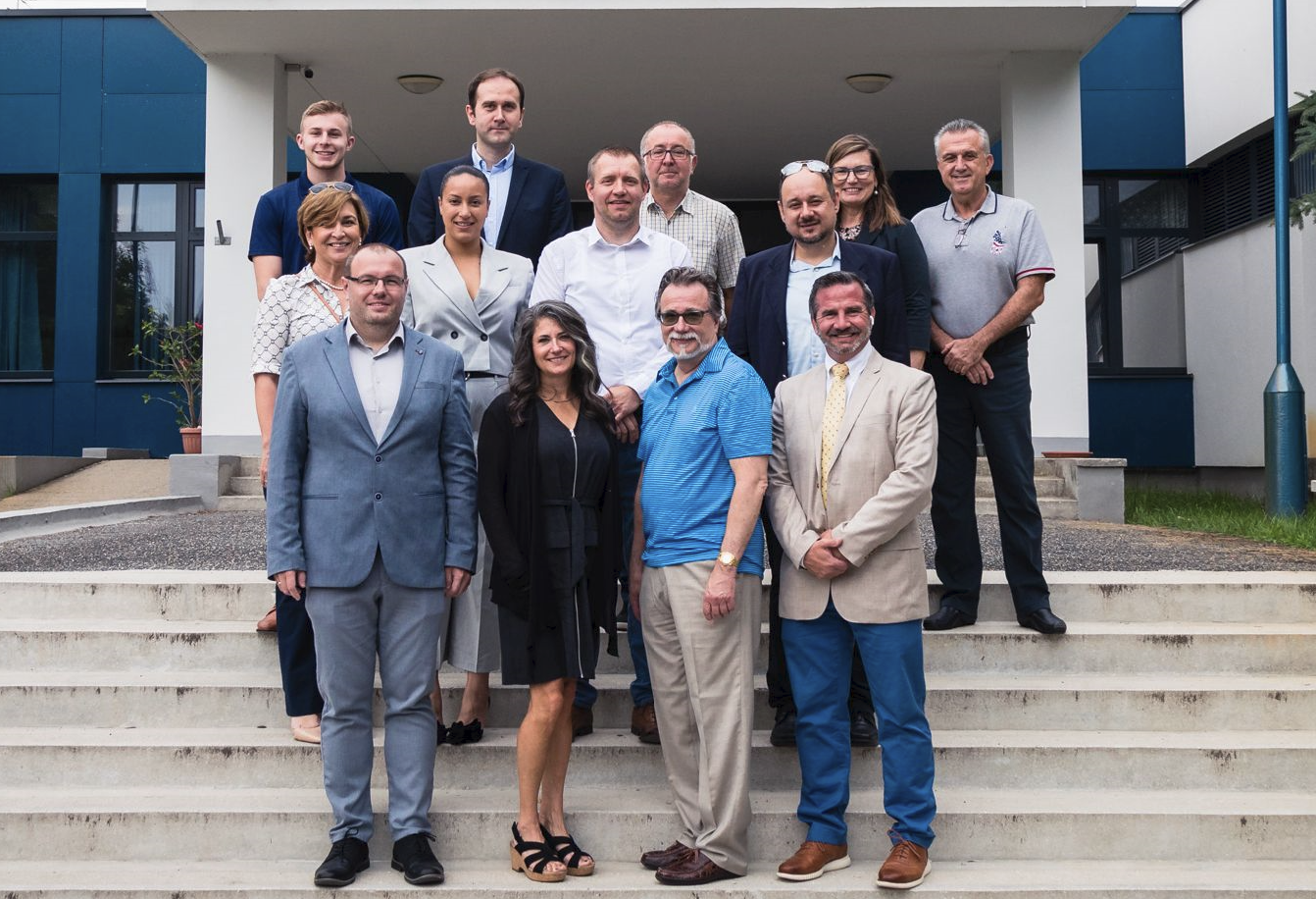 Nyitókép: az amerikai küldöttség a Széchenyi István Egyetem munkatársaival a Deák Ferenc Állam- és Jogtudományi Kar központjánál.