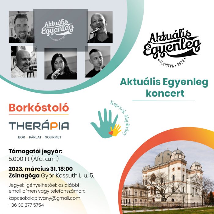 Ahogy arról már portálunk is többször beszámolt az idei Autizmus Világnapjához kapcsolódóan is színvonalas rendezvénysorozattal készül a Kapcsok Alapítvány, akik számos támogatót, segítőt tudhatnak maguk mögött. Így az Aktuális Egyenleg és a Therápia Borkereskedés is a jótevők sorát gyarapítja, az összefogás örömével, borral és zenével várják az érdeklődőket a március 31-ei, borkóstolóval egybekötött koncerten. A rendezvény részleteiről szerdán a Győr+ Rádióban beszélt Darnói Norbert, a zenekar vezetője, és Nagy Róbert a borkereskedés “borihisztora”.