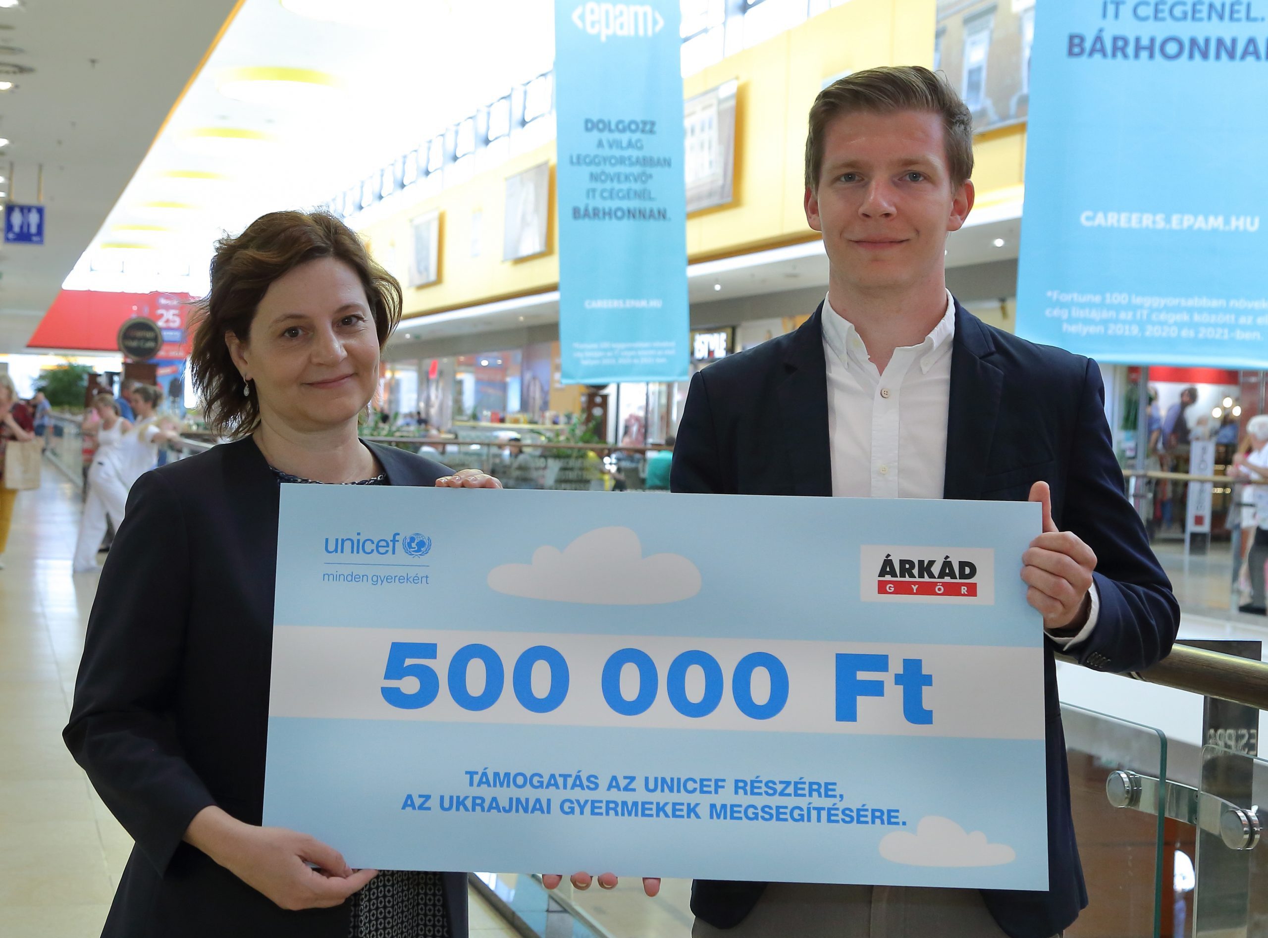 Az ukrajnai gyermekek segítésére indított akciót az Árkád Győr, amelynek keretében a vásárlók támogatásával gyűjtöttek pénzadományokat. Az így összegyűlt félmillió forintos felajánlást ünnepélyes keretek között vette át a bevásárlóközpontban az UNICEF Magyarország képviselője.