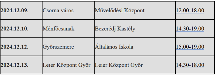 A megadott programon kívül az alábbi nyitva tartásban várják a Regionális Vérellátó Központban a vért adni szándékozókat (Győr, Magyar u. 8.):