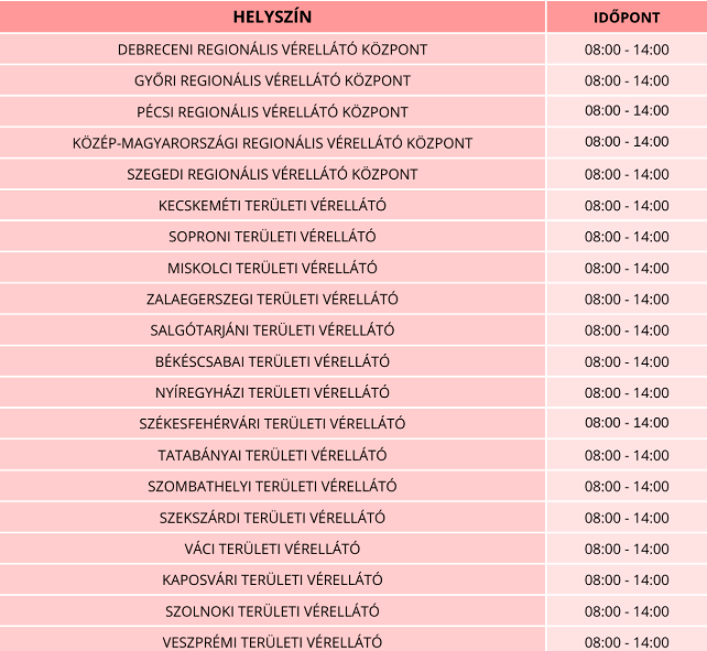 Az Országos Vérellátó Szolgálat felhívja rá a figyelmet, hogy a 6 napos munkaszüneti időszak enélkül áthidalhatatlan, hiszen a legrövidebb lejáratú vérkészítmény mindössze 5 napig tárolható.