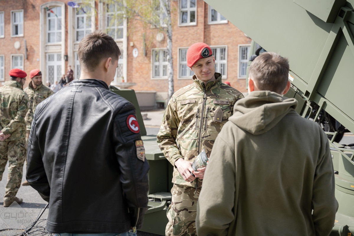 Kiss László hadnagy, a NASAMS légvédelmi rakétaosztály beosztott tisztje örömmel válaszolt a középiskolások és más érdeklődők kérdéseire. Mint elmondta: már gyermekkorától a katonai pálya vonzotta, és 2023 óta a Magyar Honvédség tisztje. A Nemzeti Közszolgálati Egyetemen végzett légvédelmi rakétásként, jelenleg a győri rakétaosztály tisztje.