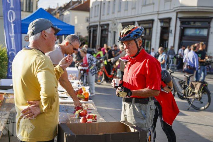 A kerékpárosok szívesen vették a kora reggeli frissítőt is, amiből sok száz adag talált gazdára, néhány óra alatt. „Csak most hallottunk erről a kezdeményezésről, de nagyon jónak tartjuk, napi szinten közlekedünk kerékpárral, Győrben nagyon jók ehhez a körülmények, de ha tehetjük, nem csak a városban, de a környéken is szívesen bringázunk” – fogalmazott a Győr+ Médiának dr. Vasvári Gergely, Gallóné Schnepp Andrea és Németh István, akik pénteken mindannyian bringás reggeliztek egy jót. Ráadásul élőzene is szórakoztatta az erre járókat.