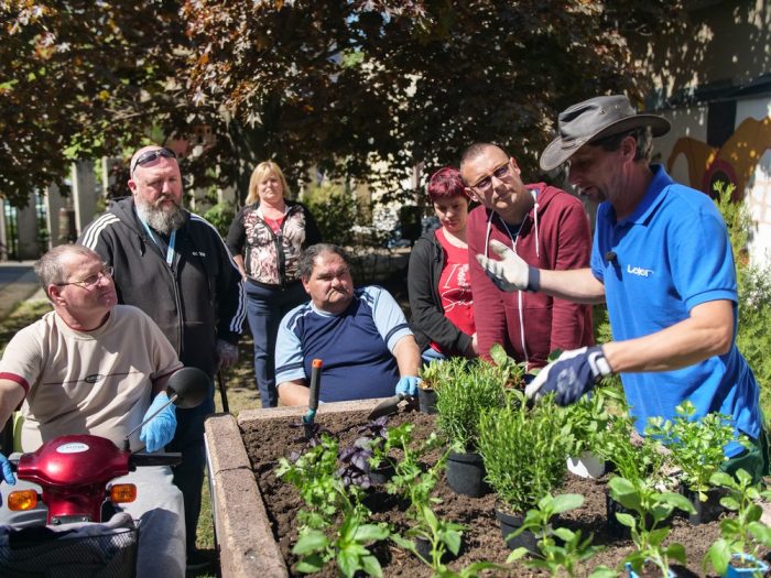 A Lajta utcai központban dolgozók többnyire panelházakban élnek, van, aki kerekesszékes, van, aki protézissel él, és a kerti foglalatosság eddig nem volt lehetséges számukra.