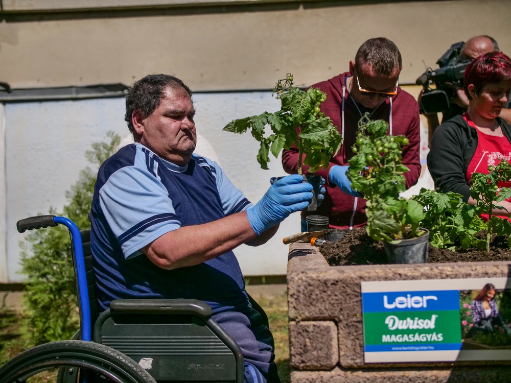 A Föld napja alkalmából a mozgáskorlátozottak számára könnyen kezelhető magaságyást épített a Leier Hungaria Kft. Zöldség- és fűszernövény-palánták is kerültek a kis „kertészetbe”, amelyből majd frissen szedett paradicsomok és paprikák ízesítik a közös főzések ételeit vagy a tízórais szendvicseket.