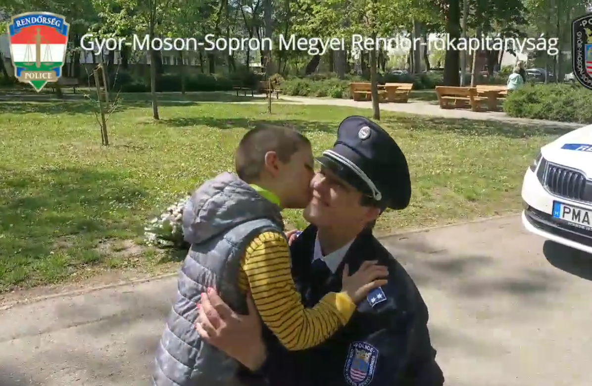 Megható videó: kisfiú köszönti rendőr édesanyját