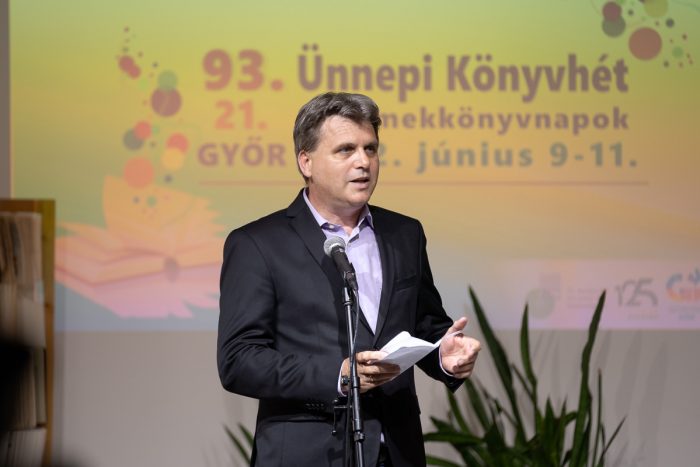 A Kisfaludy Könyvtár rendezvénytermében a magyar kortárs irodalom ikonikus alakja, Zalán Tibor József Attila díjas író, költő, drámaíró megnyitó beszédében emlékeztetett rá: nem csupán a 93. ünnepi könyvhét kezdődik meg a mai nappal, hanem egyúttal a győri könyvtár 125 éves fennállását is ünnepeljük az idén. Ez mintegy két emberöltőnyi hivatást és szolgálatot jelent, így Vörösmarty Mihály klasszikus sorait idézve fel kell tenni a kérdést: „Ment-e a könyvek által a világ elébb?”