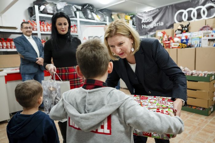 A győri adományközpontban, a Fogadóban adta át Németh Kinga, az Audi Hungaria személyügyért és szervezetért felelős igazgatósági tagja a vállalat munkatársai által összegyűjtött karácsonyi meglepetéseket. Az adományok nagycsaládban élő gyermekekhez, gyermeket egyedül nevelőkhöz, nélkülöző hajléktalanokhoz és idősekhez kerülnek.