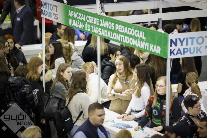 Óriási érdeklődés mellett zajlott a Széchenyi István Egyetem nyitott kapuk rendezvénye kedden. A korábbiakkal ellentétben ezúttal az Egyetemi Csarnokba várták a továbbtanulásra készülő fiatalokat és szüleiket. Több mint 5000 középiskolás érkezett a campusra, őket különböző tájékoztatók, beszélgetések és laborlátogatások várták a rendezvényen. A Széchenyi kancellárja tájékoztató előadásában úgy fogalmazott, érdemes komoly mérlegelés után dönteni arról, hol tanulnak tovább a fiatalok.