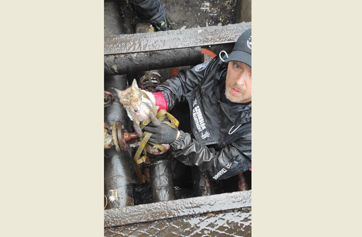 Az előzetes fotók alapján úgy tűnt, nem lesz túl nehéz dolga az állatmentőknek, viszont ahogy a helyszínen felnyitották az akna fedelét, már látták, hogy megizzadnak majd a megoldásért: az akna meglehetősen mély és szűk volt, de a rókakölyök sorsa a srácok kezében volt…