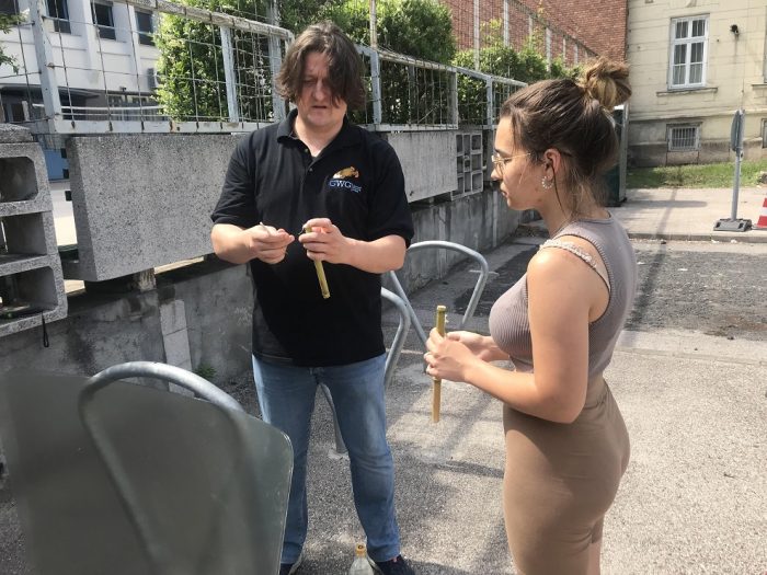 “Az egész lényege, hogy a rovarok megéljenek itt a városi környezetben is. Szerintem ez egy érdekes projekt, kíváncsi vagyok, hogy mi lesz az eredménye. Mi a barátommal kifúrtuk a fahasábokat, hogy az így keletkező üregekbe megélhessenek a bogarak.” – emelte ki Gazsó Ákos Attila 9. d osztályos tanuló.