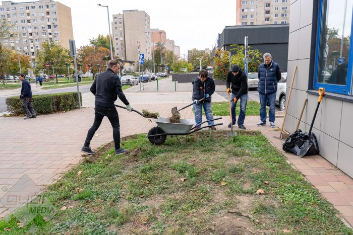 A Győr+ Média székházánál lévő előkert közterület, s erősen ráfért már a takarítás, felfrissítés. Így kollégáinkkal úgy döntöttünk, kezünkbe vesszük a sorsát. Vagyis leginkább ásót, kapát, gereblyét ragadtunk, szakértő segítséget is kaptunk és széppé varázsoltuk az utcafrontot.