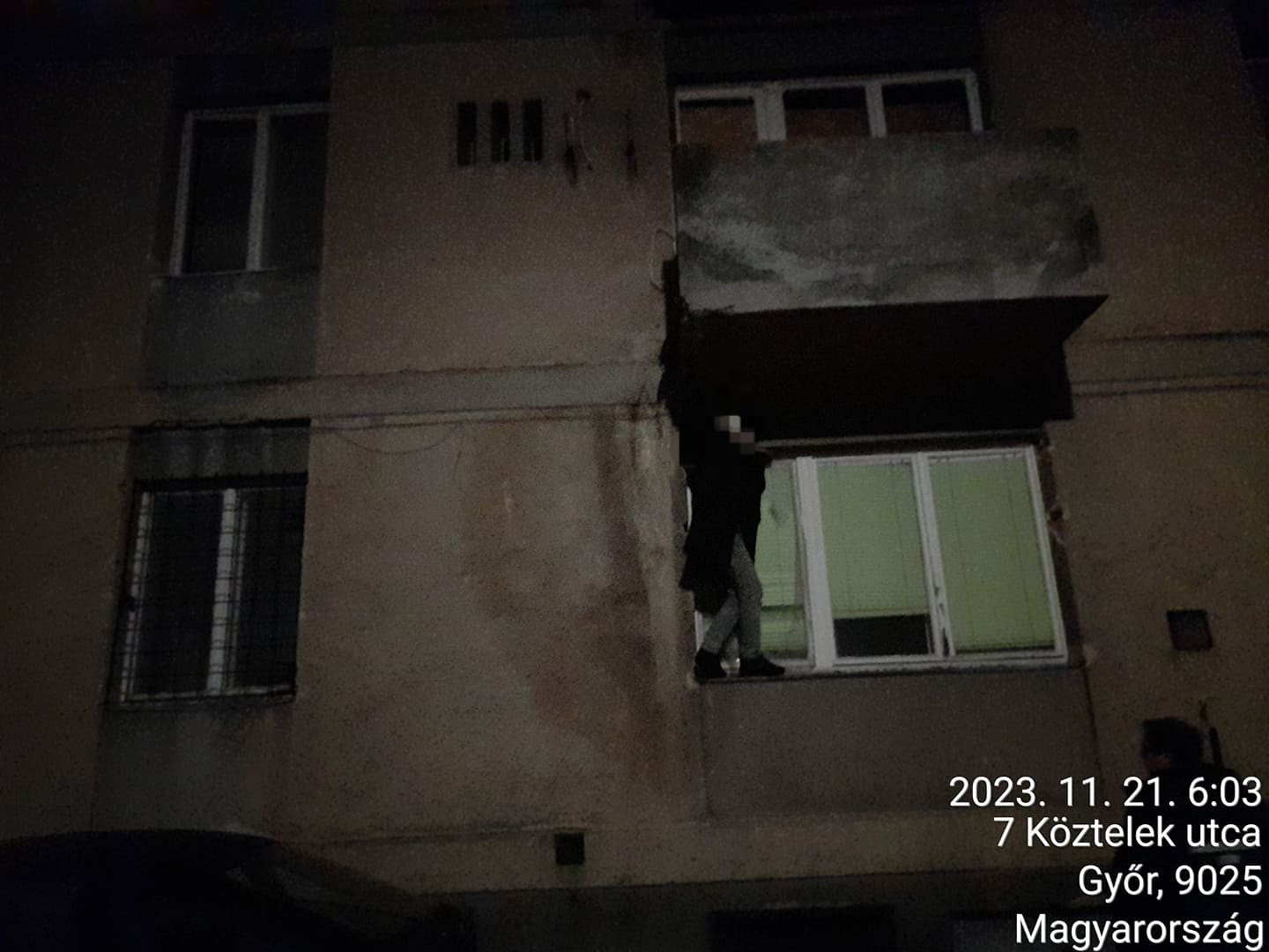 2023. november 21-én bejelentés érkezett a Tevékenység-irányítási Központba, miszerint a Győr-Szol munkatársa és a városrendészek az érintett ingatlanban visszatartanak egy személyt. A kiérkező járőrök megállapították, hogy a férfi az épület oldalán felmászott az erkélyre, az erkélyajtót megrongálva bement a lakásba. A jogsértőt elfogását követően a rendőrség az eljáráskor őrizetbe vette.”