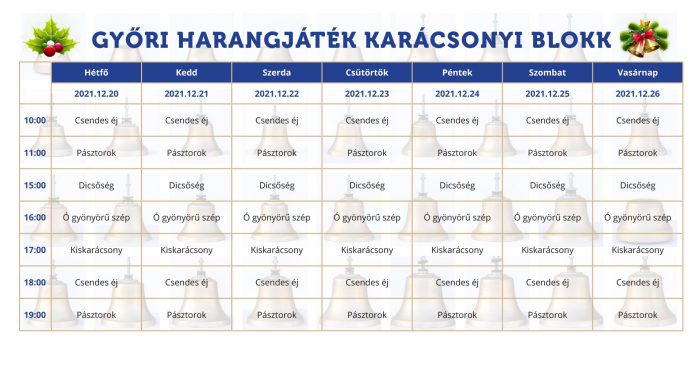 Az ünnepek alatt a következő dallamok csendülnek fel: