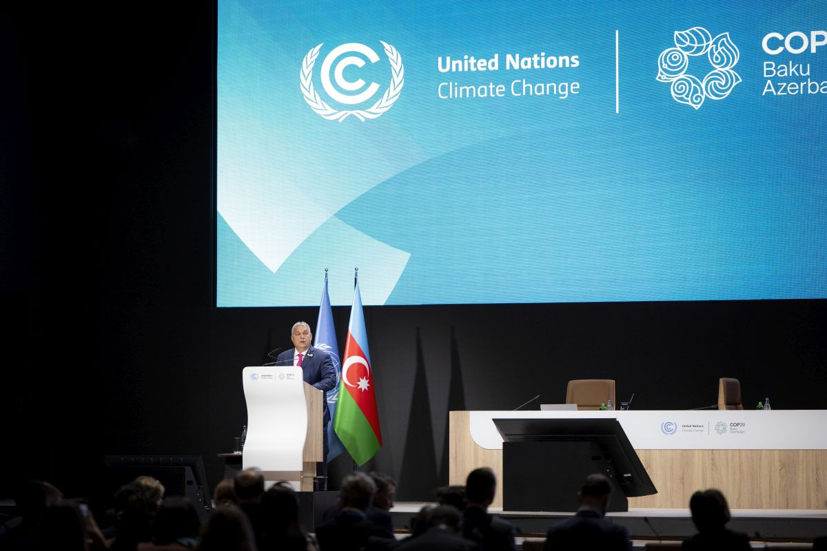 Klímapolitikánkat körültekintő megfontolásnak és józan észnek kell vezérelnie, nem pedig ideológiának, túlzott riadalomnak vagy pániknak – fogalmazott a magyar miniszterelnök, aki több mint 40 állam- és kormányfő között szólalt fel az Azerbajdzsánban tartott tanácskozáson.