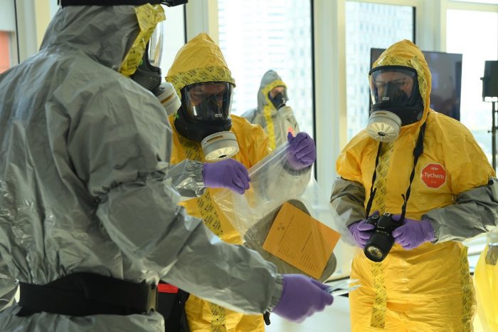 A helyszínelő magyar csapatnak így a lakást és a táskát kellett átvizsgálnia, miközben élőben, illetve online közvetítve 162 ország szakértői “nézték árgus szemekkel mozdulataikat”. A technikusok egyéni védőeszközökbe beöltözve, speciális sugárzást mérő eszközöket alkalmazva, valamint rádiókommunikációs gázálarcokat öltve magukra hajtották végre a rájuk bízott feladatot – írták.