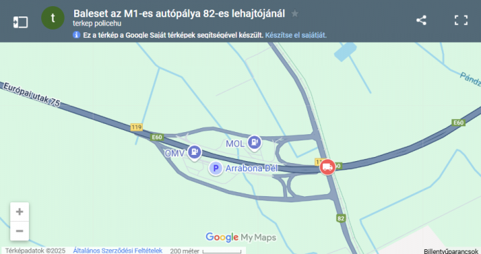 Mint írják, egy kamion szalagkorlátnak hajtott az M1-es autópálya Hegyeshalom felé vezető oldal 119-es kilométerszelvényében lévő 82-es számú főútvonal lehajtójánál április 3-án a kora délutáni órákban.