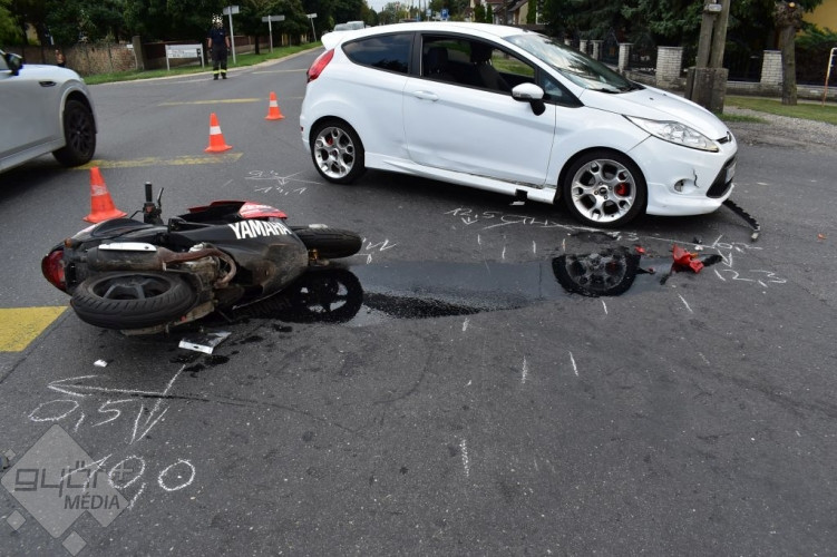 Mosonmagyaróváron közlekedett személygépkocsijával egy 18 éves nő augusztus 28-án 17 óra 45 perckor a Bauer Rudolf utcában. Haladása során a Kossuth Lajos utcai kereszteződéséhez érve az „Elsőbbségadás kötelező!” táblát figyelmen kívül hagyta, nem biztosított elsőbbséget az úton szabályosan közlekedő motorkerékpárosnak, aki a személygépkocsi szabálytalan manőverét észlelve vészfékezett, a járműve felett elvesztette az irányítást, és nekicsúszott az autónak. A motoros a baleset következtében megsérült, őt a mentők kórházba vitték.