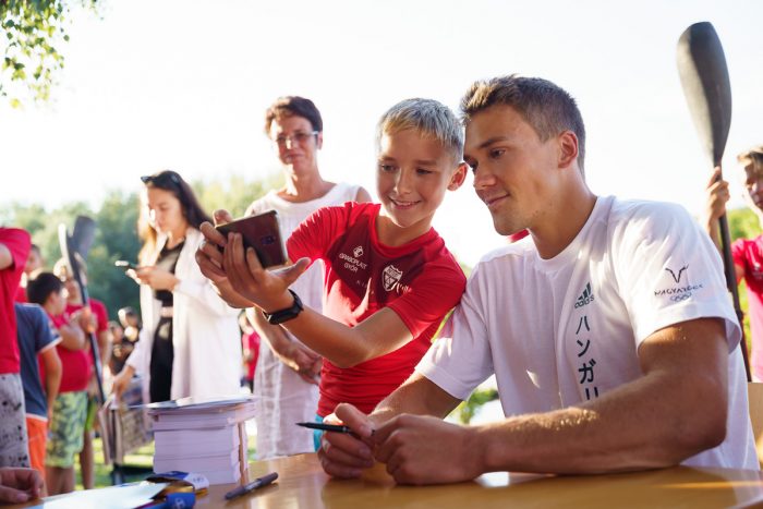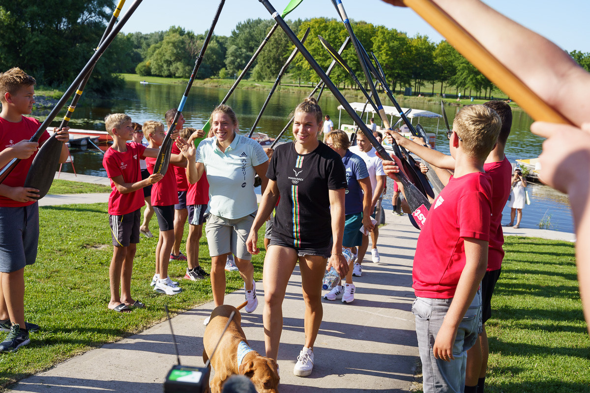 Kopasz Bálint, olimpiai aranyérmes kajakos, Balla Virág és Takács Kincső olimpiai ötödik helyezett kenusok sétahajóval érkeztek a Győri Vízitelepre kedden délután. Hatalmas ováció és tömeg fogadta a győri versenyzőket. A Kajak-Kenu SE tagjai felemelt lapáttal várták a sportolókat, akik edzőikkel Kopaszné Demeter Irénnel és Szabados Krisztiánnal érkeztek.