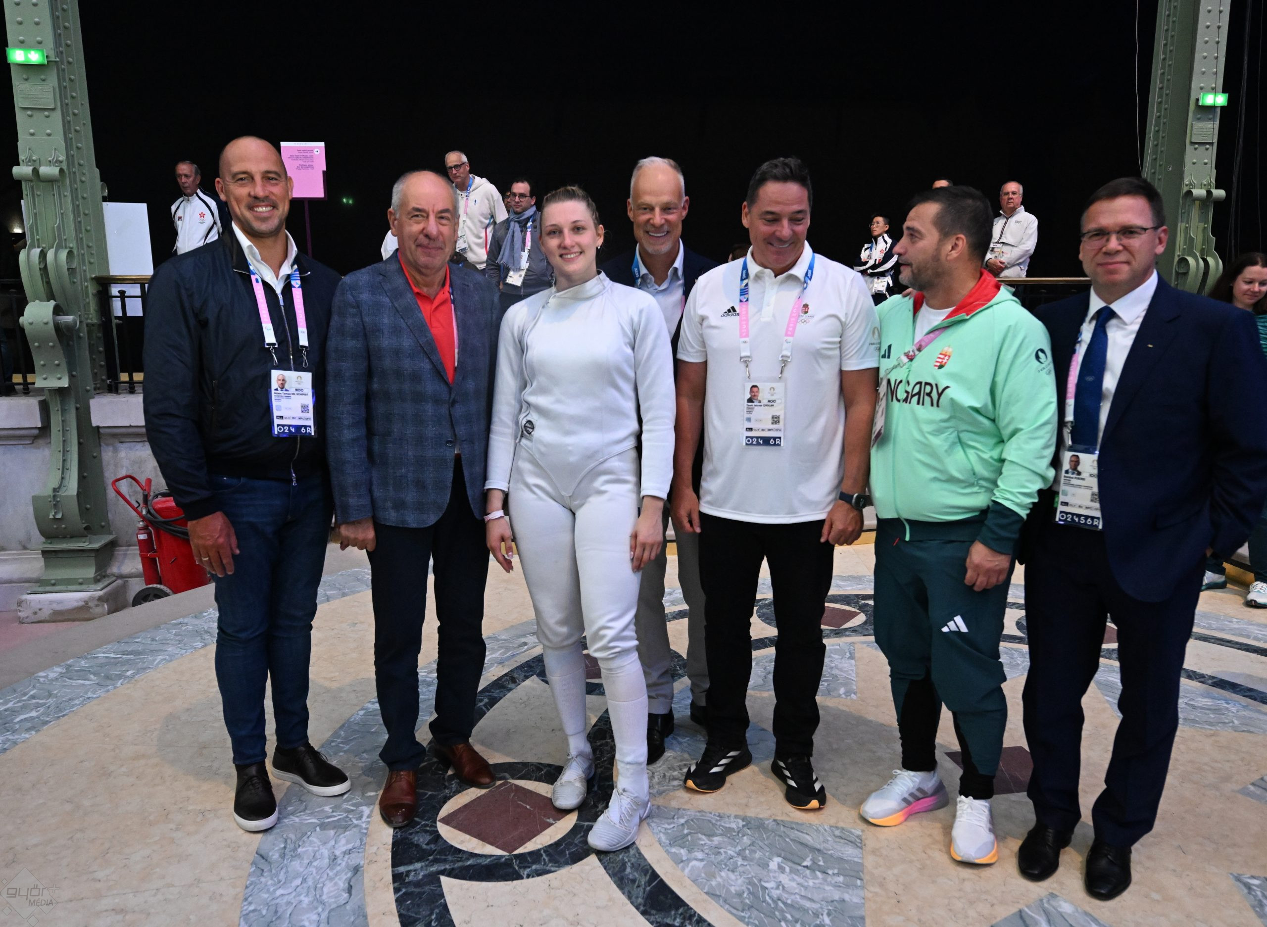 Nyitókép: Schmidt Ádám, a Honvédelmi Minisztérium sportért felelős államtitkára, Sulyok Tamás köztársasági elnök, Muhari Eszter, a női párbajtőr egyéni versenyének bronzérmese, Szalay-Bobrovniczky Kristóf honvédelmi miniszter, Gyulay Zsolt, a Magyar Olimpiai Bizottság elnöke, Csampa Zsolt, a Magyar Vívószövetség elnöke és Fürjes Balázs, a Nemzetközi Olimpiai Bizottság tagja (b-j).