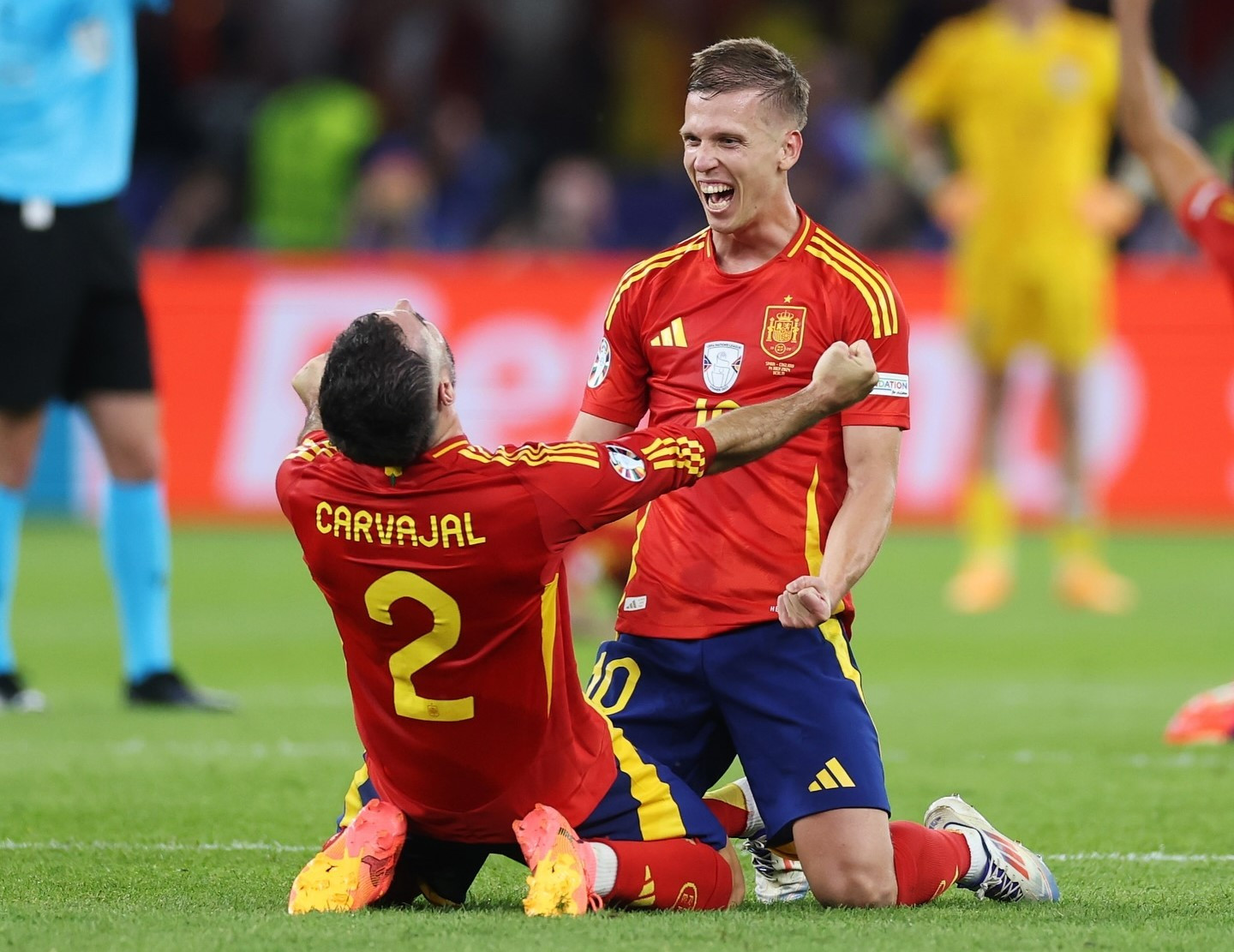 Spanyolország: Simon – Carvajal, Laporte, Le Normand (Nacho, 83.), Cucurella – Rodri (Zubimendi, a szünetben), Ruiz – Yamal (Merino, 89.), Olmo, Williams – Morata (Oyarzabal, 68.)