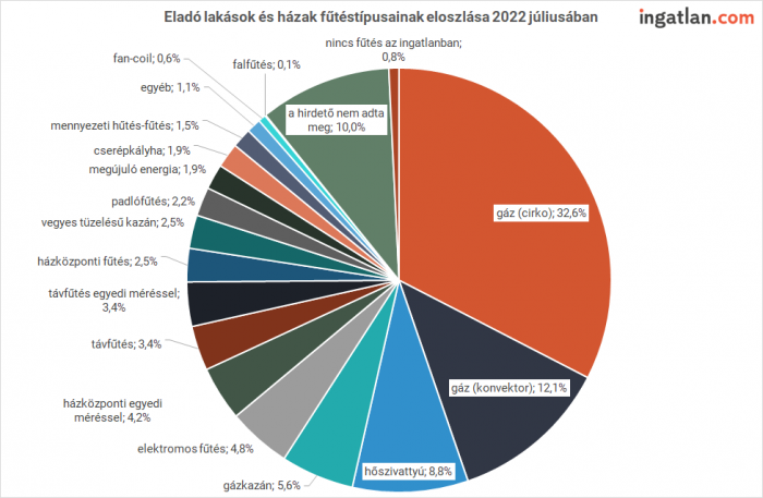 A jelenlegi kínálatot nézve látszik, hogy a gazdára váró lakóingatlanok fele ingatlanon belüli gázfűtéssel rendelkezik (cirkó, gázkazán, konvektor), további 7 százalékuk pedig távfűtéses. Majdnem 7 százalékuknál szintén a gázalapú házközponti fűtés jellemző. Az elektromos fűtésrendszerű lakások részesedése 5 százalék, ezeknél különösen fontos tényezővé válik az új rezsiszabály. Összességében az eladó lakások és házak háromnegyedénél a fűtés gáz alapú.