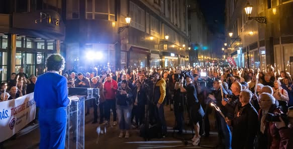 A politikai megemlékezések sora már az ünnep előestéjén elkezdődött: a Demokratikus Koalíció fáklyás felvonulást tartott a Pilvax közben.