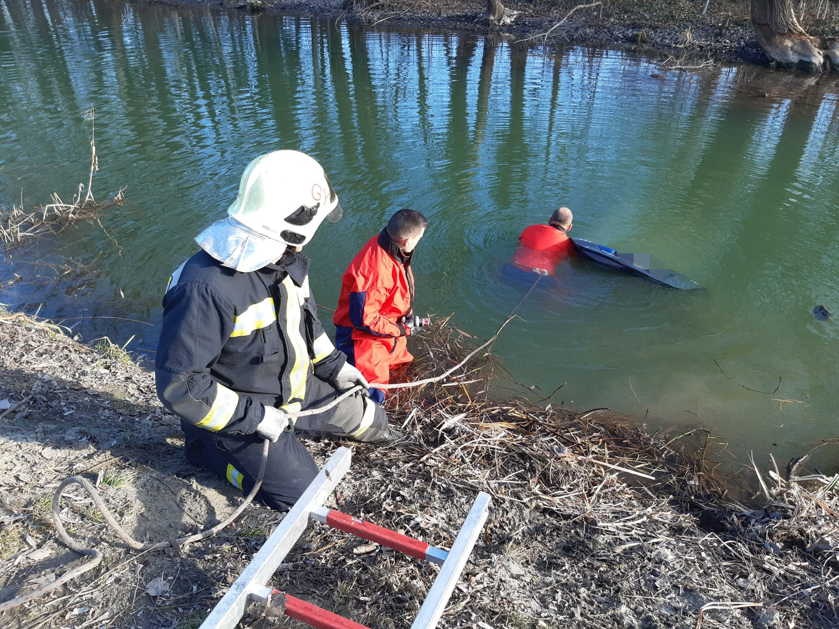 A sofőr ki tudott szállni a járműből. Az autót a győri hivatásos tűzoltók csörlővel húzták ki a vízből.
