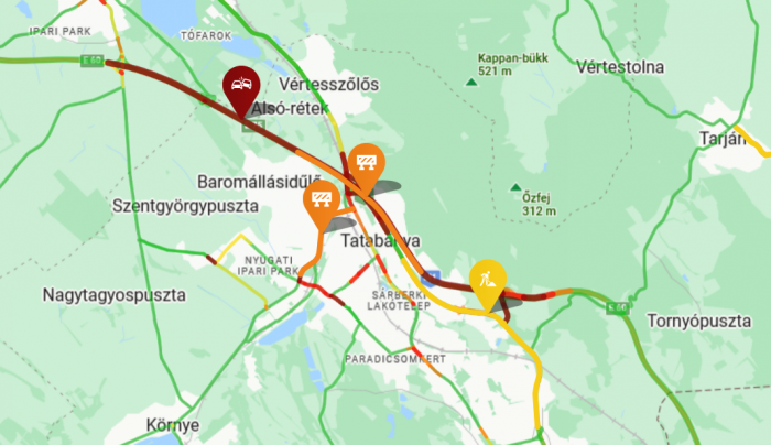 A rendőrség azt kéri, hogy aki teheti, az 56-os kilométerszelvénynél hajtson le a sztrádáról, visszatérni a 63-as kilométerszelvényben lehet – írja a police.hu