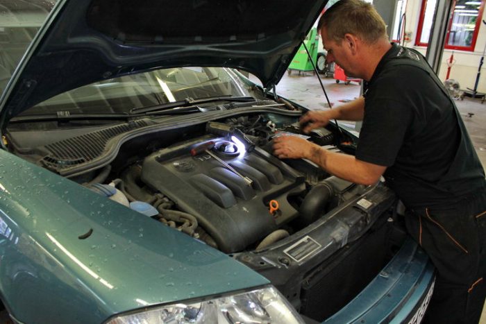 A szervizben  hibafeltárással kell kezdeni, hogy valóban félretankolás okozza-e a gondokat. Ezt egyszerű ellenőrizni, hiszen a benzinnek és a gázolajnak más a szaga: elég kinyitni a tanksapkát. Ezután jöhet az érdemi munka, el kell tüntetni a benzint a teljes üzemanyagrendszerből. A korszerű dízelmotorok segítenek ebben, ugyanis a nagynyomású szivattyú mellett a tankban dolgozik egy kisebb, 2-3 bar nyomással üzemelő szállító szivattyú is. A motortérben megbontva az üzemanyag vezetéket, egy ideiglenes csővel toldva azt, kannába fejthető a tankból az üzemanyag.
