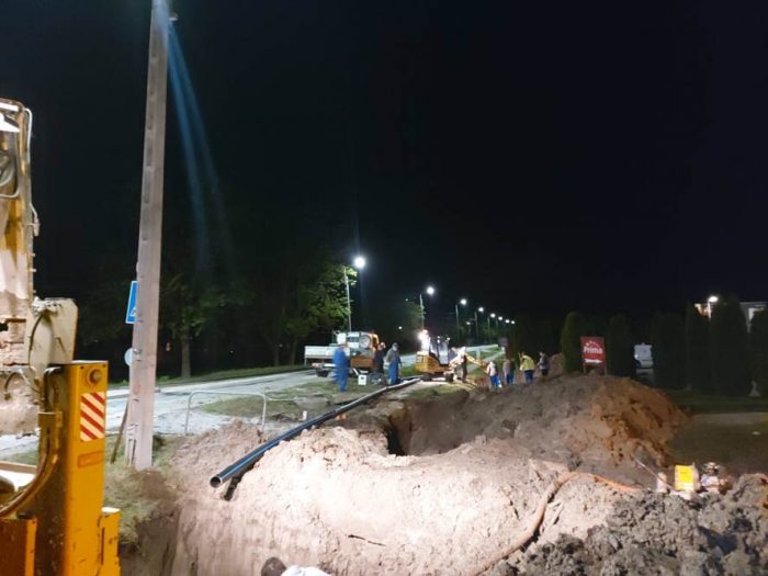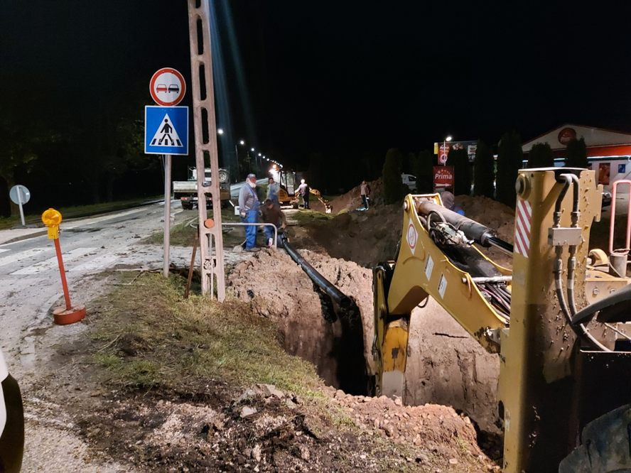 A hajnali órákra egy ideiglenes, föld feletti, 150 mm átmérőjű, 30 méter hosszú főnyomó vezetéket építenek fel a helyszínen. Ezen keresztül tudják helyreállítani az ivóvíz szolgáltatást.