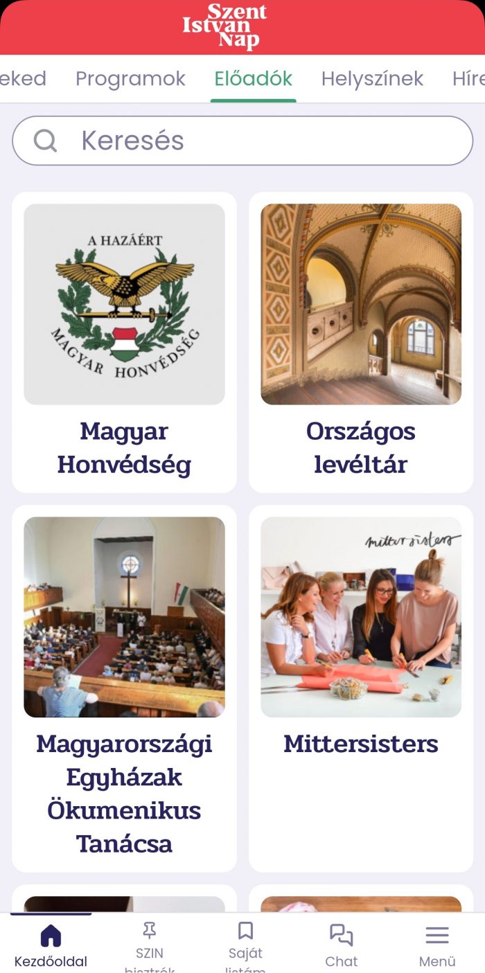 A Szent István Nap mobilalkalmazás új, felhasználóbarát felülete lehetővé teszi, hogy a fesztiválozók könnyedén eligazodjanak a gazdag programkínálatban, a fejlett keresési funkciónak és az intuitív menürendszernek köszönhetően pedig villámgyorsan rátalálhatnak az őket leginkább érdeklő eseményekre.