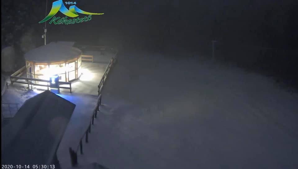Ahogy azt a meteorológusok megjósolták, szerda éjszaka megérkezett az első hó, a Kékestető fehérbe öltözött.
