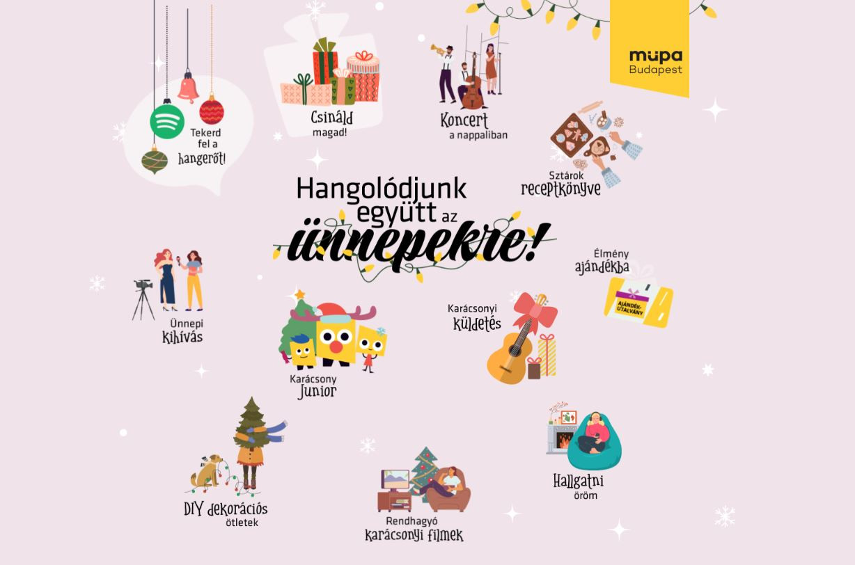 A Müpa számos meglepetéssel készül az idei adventi időszakra: többek között hangszer- és kottagyűjtő jótékonysági akciót hirdetett, honlapján pedig szórakoztató karácsonyi tartalmakat kínál - áll az intézmény MTI-hez kedden eljuttatott közleményében.
