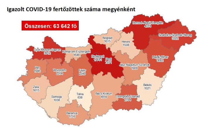 2079 újabb magyar állampolgárnál mutatták ki az új koronavírus-fertőzést (COVID-19), ezzel 63 642 főre nőtt a hazánkban beazonosított fertőzöttek száma. Elhunyt 63 többségében idős, krónikus beteg, így az elhunytak száma 1535 főre emelkedett, 16 646-an pedig már meggyógyultak. Az aktív fertőzöttek száma 45 461 fő. Az aktív fertőzöttek 27 %-a, az elhunytak 35%-a, a gyógyultak 29%-a budapesti. 2891 koronavírusos beteget ápolnak kórházban, közülük 243-an vannak lélegeztetőgépen.
