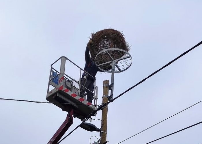 A gólyafészek tájékán az elmúlt időszak is mozgalmasan telt, ugyanis a fészek fém váza elkorrodálódott és sajnálatos módon leesett a helyéről.
