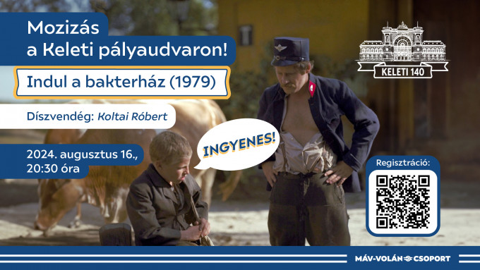 Fontos év az idei a Keleti pályaudvar életében, megnyitásának 140. évfordulóján, 2024. augusztus 16-án, változatos programokkal ünnepel a MÁV. A rendezvény zárószáma és kiemelt eseménye az esti filmvetítés. A pályaudvar Kerepesi csarnoka erre a különleges alkalomra moziteremmé alakul át, műsoron a kultikus Indul a bakterház!