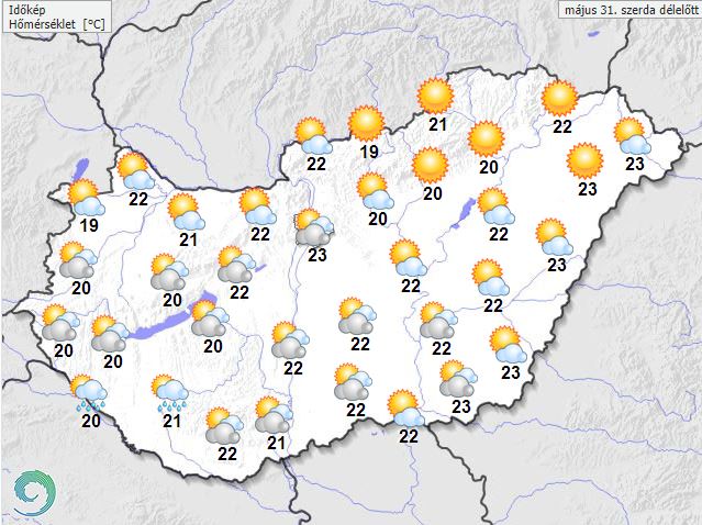 Szerdán a délelőtti felhősebb időt követően a délutáni órákra az ország döntő részén gomolyfelhős, napos időre kell készülni. Délelőtt főként délnyugaton lehet záporeső, délután a gomolyok a déli, délkeleti tájakon magasabbra törhetnek, emiatt arrafelé kis számban zápor, zivatar is kialakulhat – írta az Országos Meteorológiai Szolgálat.