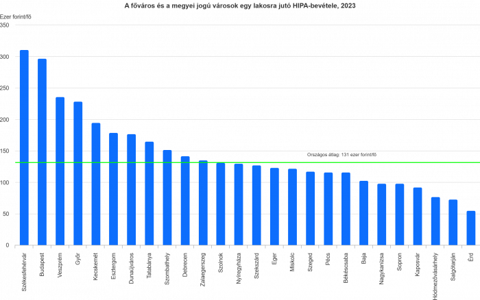 Győr az egy lakosra jutó HIPA-bevételek összehasonlításában 2023-ban a negyedik helyen végzett (229 ezer forint), Székesfehérvár, Budapest és Veszprém lett a három dobogós e tekintetben.