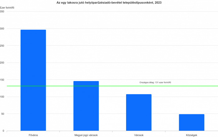 A HIPA a települések helyi közösségének támogatása érdekében használható fel, így az egy lakosra jutó HIPA-bevétel alapján lehetőség nyílik az egyes települések összehasonlítására. Hazánkban egy lakosra átlagosan 131 ezer forint HIPA-bevétel jutott 2023-ban, ez azonban jelentős területi különbségeket takar: a fővárosban 297 ezer forint volt. A megyei jogú városok – közöttük Győr – átlaga is meghaladta az országos átlagot a rájuk kalkulált 146 ezer forintos összeggel, míg a többi város és község átlagértéke jóval alatta maradt annak. A községek esetében a legkevesebb ez a bevételi átlag, 49 ezer forint, ennél valamint több, 108 ezer forint a városok esetében.