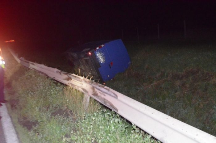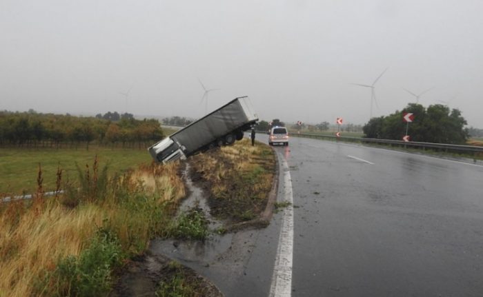 Az M1-es autópályán Hegyeshalom irányába közlekedett tehergépkocsival augusztus 5-én hajnalban 54 éves cseh férfi. Haladása során – eddig tisztázatlan ok miatt – az út jobb oldali szalagkorlátjának ütközött, majd azon átrepülve a jármű a vízelvezető árokba csapódott. A balesetben személyi sérülés nem történt, anyagi kár keletkezett.