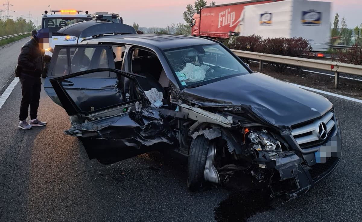 Ezt megelőzően közúti közlekedési baleset is történt néhány kilométerrel arrébb, az M1-es autópálya a Hegyeshalom felé vezető oldalon. Itt egy személygépkocsi ütközött kamionnak.  A rendőrségi szemle időtartama alatt a belső sávon haladhat a forgalom.