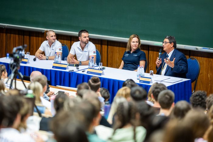 Hatalmas volt a hallgatói érdeklődés a dr. Merkely Béla rektor által vezetett beszélgetésen. Kapu Tibor mellett a tartalékos kutatóűrorvos Cserényi Gyula, valamint a Semmelweis Egyetem Városmajori Szív- és Érgyógyászati Klinika kardiológus szakorvosa , hazánk első, az Európai Űrügynökség (ESA) által minősített űrorvosa, dr. Nagy Klaudia Vivien is részt vett.