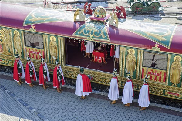 Az ereklyeszállító kocsit a kormány megbízásából, a Magyar Nemzeti Múzeum irányításával a Dunakeszi Járműjavítóban építették újra 5 év alatt, az eredetivel megegyezően, de a mai vasúti közlekedésbiztonsági előírásoknak megfelelően. Az ereklyeszállító kocsiban a Szent Korona másolata látható, előtte hagyományőrző koronaőrök állnak.
